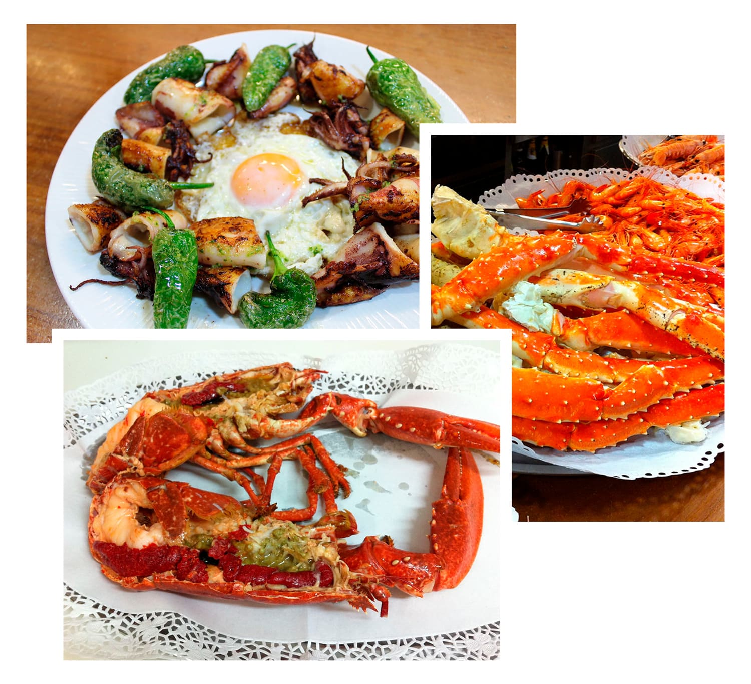 Sorpréndase con los grandes ejemplares de calidad superior: centollos, bueyes de mar, camarones jumbo o cañaíllas; y no deje de probar los bogavantes azules del Cantábrico, nécoras y langostas rojas, ya sea a la plancha o cocidos con maestría.